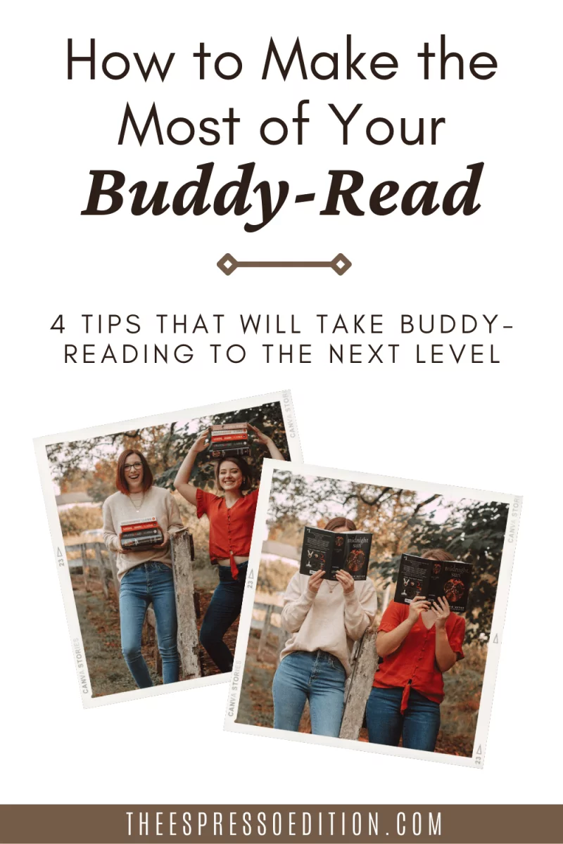 Buddy-reading is when you and one other friend read a book at the same time and discuss it along the way. Rather than a busy book club with lots of people and a book that the leader often chooses, you and your friend have the ability to pick a book together and read at your own pace.