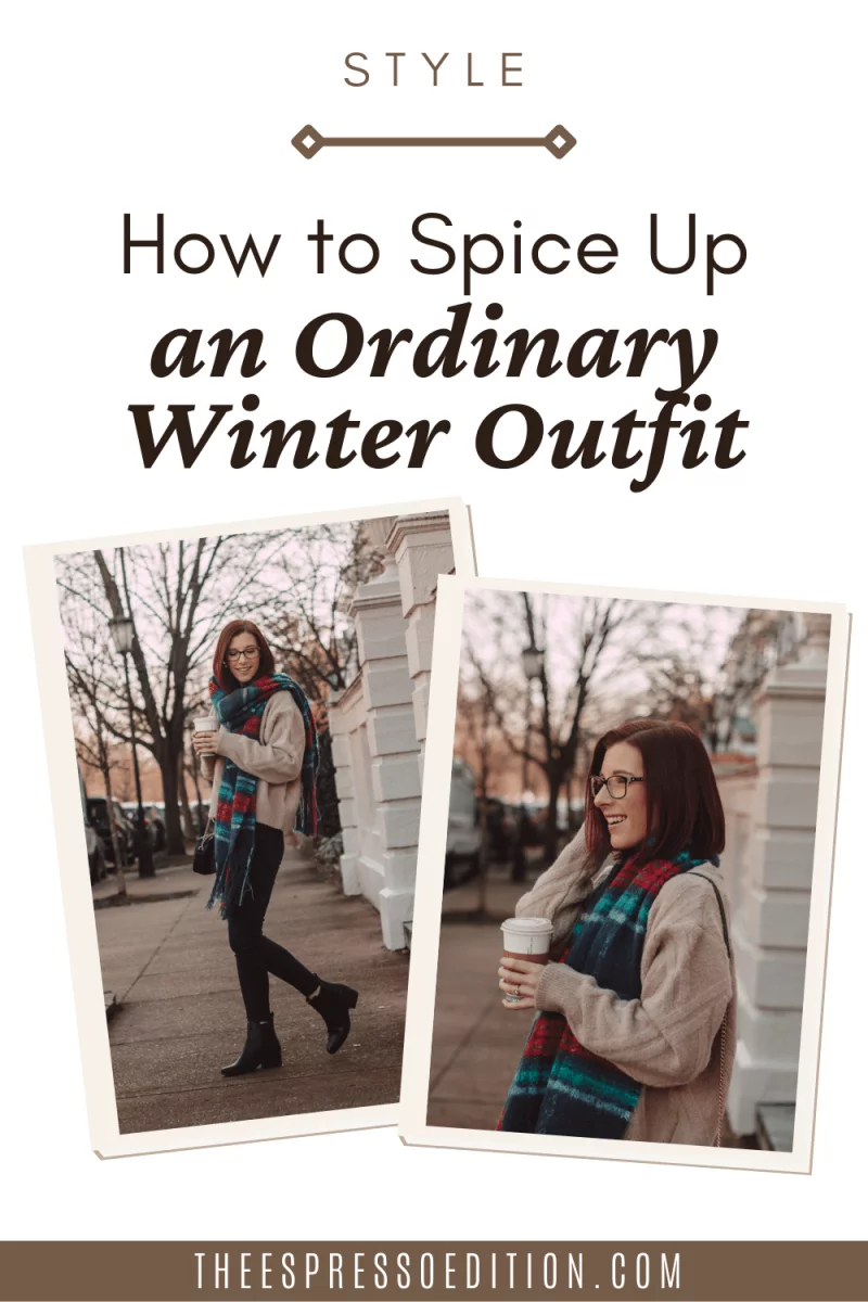 My outfits are primarily neutral tones. I like soft browns and camel colors, black, gray, and khaki. I don’t stray super far from this “rainbow” during the winter season, so a colorful scarf is a great way to add some vibrancy without taking me too far outside my comfort zone. If you prefer to stick with the warmer neutrals, opt for a pattern. Plaid, stripes, or even houndstooth are all great options to bring a pop to your look!